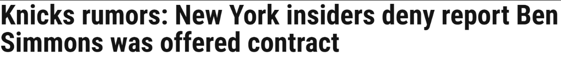 根据另外一位记者伊恩-贝格利的报道,尼克斯队在休赛期期间与自由球员本-西蒙斯有过交流,对西蒙斯也确实感兴趣,但球队从未向西蒙斯正式提出过报价。
