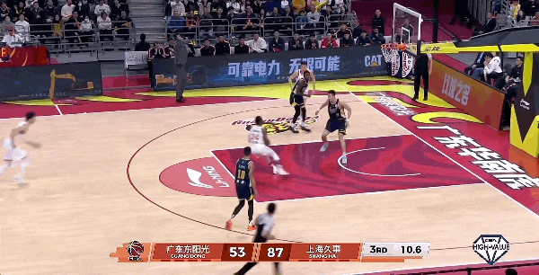 洛夫顿追身三分,分差达到50分。后面发生的事情,简单来说就是,上海队队员轮流进三分球......进完你的,进你的,进完你的,进你的......