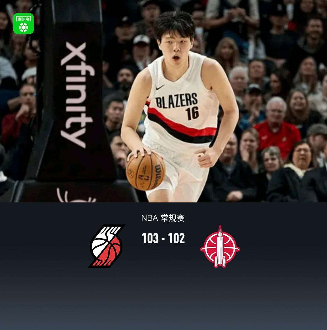 第四节,开节段杨瀚森连续出现犯规,紧跟单臂劈扣扣飞,随后下场休息,火箭阿门连投带罚追平比分,随后双方持续混战,开拓者夏普、卡马拉相继三分领先7分,后半节上来火箭杜兰特连续得5分追近比分,随后开拓者又是阿夫迪亚站出来连续得分再度领先7分,还剩最后2分钟,火箭先是杜兰特连得5分追近至2分,紧跟阿夫迪亚冲框回应,随后火箭阿门造杀伤罚二中一领先3分,随后开拓者不中,提前采取犯规战术,杜兰特再造杀伤罚球全中追至1分,最高关键时刻开拓者再度失误,留给火箭最后一攻机会,杜兰特中投不中,伊森补篮命中可惜超时,最终开拓者103-102战胜火箭。